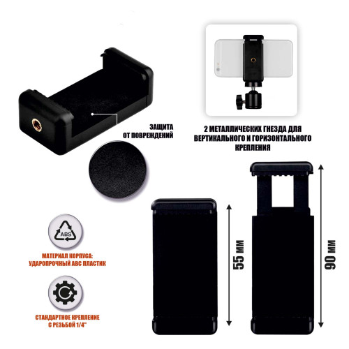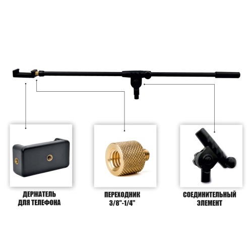 Теги: Наклонная стойка PRO-63-R38T с держателем для телефона для горизонтальной съемки сверху на штатив с резьбой 3/8"